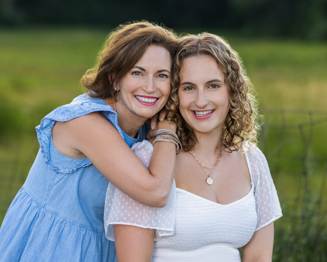 Outdoor portrait of two teenaged sisters in white dresses in field norwood ma